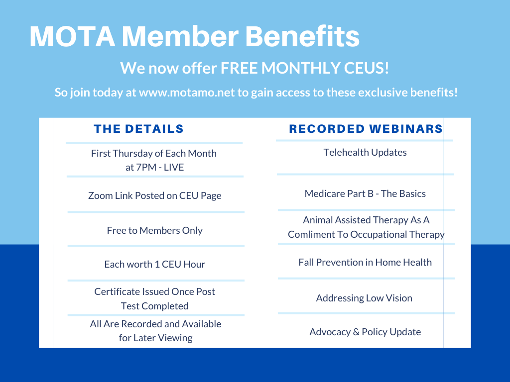 One who has received initial certification by the American Occupational Therapy Certification Board (AOTCB) or the National Board of Certification of Occupational Therapy (NBCOT). If practicing, must maintain Missouri License.